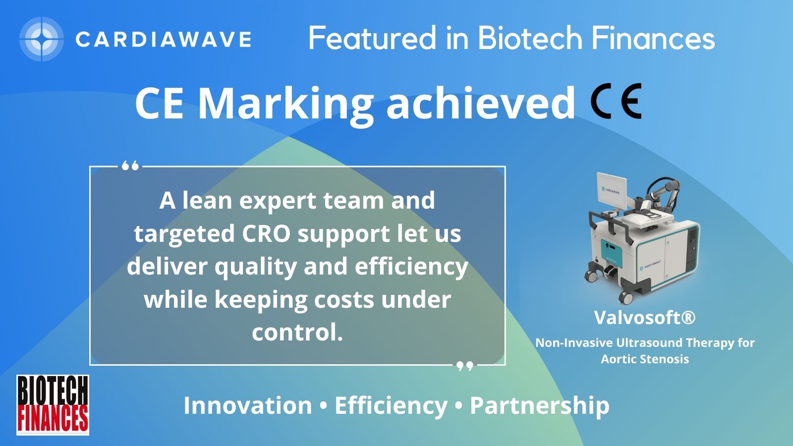 We are proud to be featured in Biotech Finances following a major milestone: the CE marking for our non‑invasive ultrasound-based treatment for severe aortic stenosis.