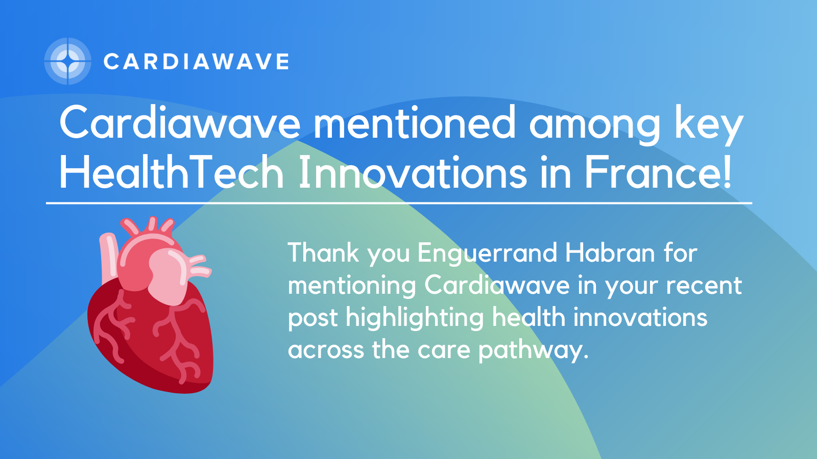 💙 Thank you Enguerrand Habran for mentioning Cardiawave in your recent post highlighting health innovations across the care pathway: https://www.linkedin.com/feed/update/urn:li:activity:7350446534619983872/